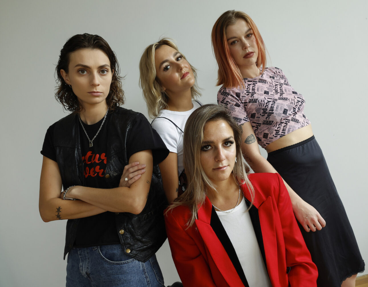But during the pandemic, everything fell apart. Universal dropped the Beaches in 2022, which caused them to re-evaluate their trajectory. “We kind of took that period as time to grow as a band and figure out what was working and what wasn’t,” says Enman-McDaniel. “And we kind of cleared house, got a new manager and new agents, and just really sat down and talked about what we want this next chapter to be and how we want our music to be.”