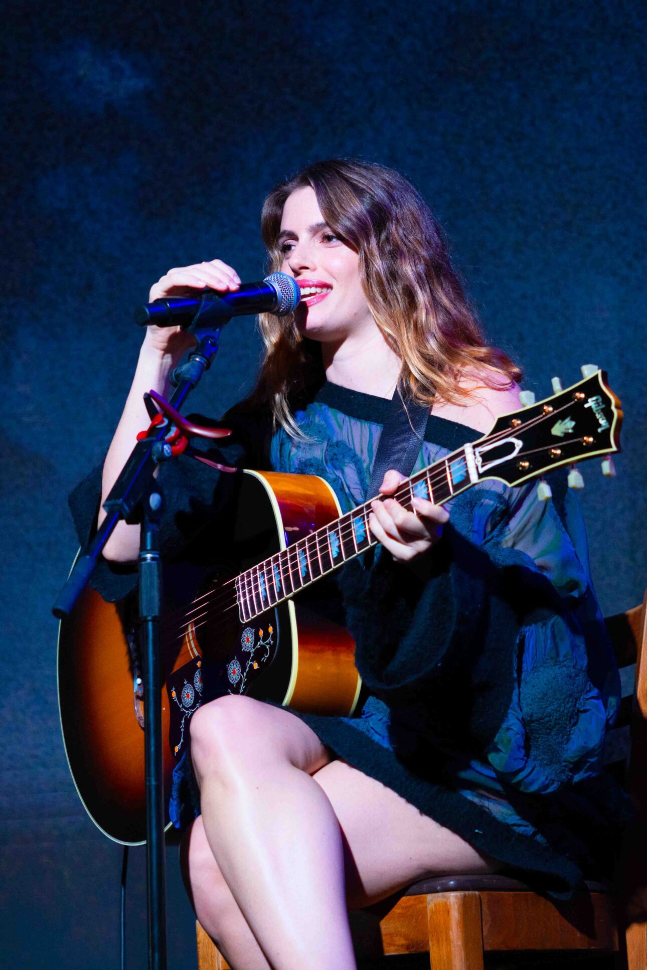Partiers noshed on artisan pizzas and ice cream delights while sipping Lalo Tequila and Manojo Mezcal cocktails. The art world’s best dressed mingled under the stars as James handed the stage over to Argentinian talent Chiara Parravicini, who brought a hush over the crowd with her intimate performance. Armed only with an acoustic guitar and her angelic vocals, she cast a spell with her single “La Luna,” breathing a moment of romanticism into the night.