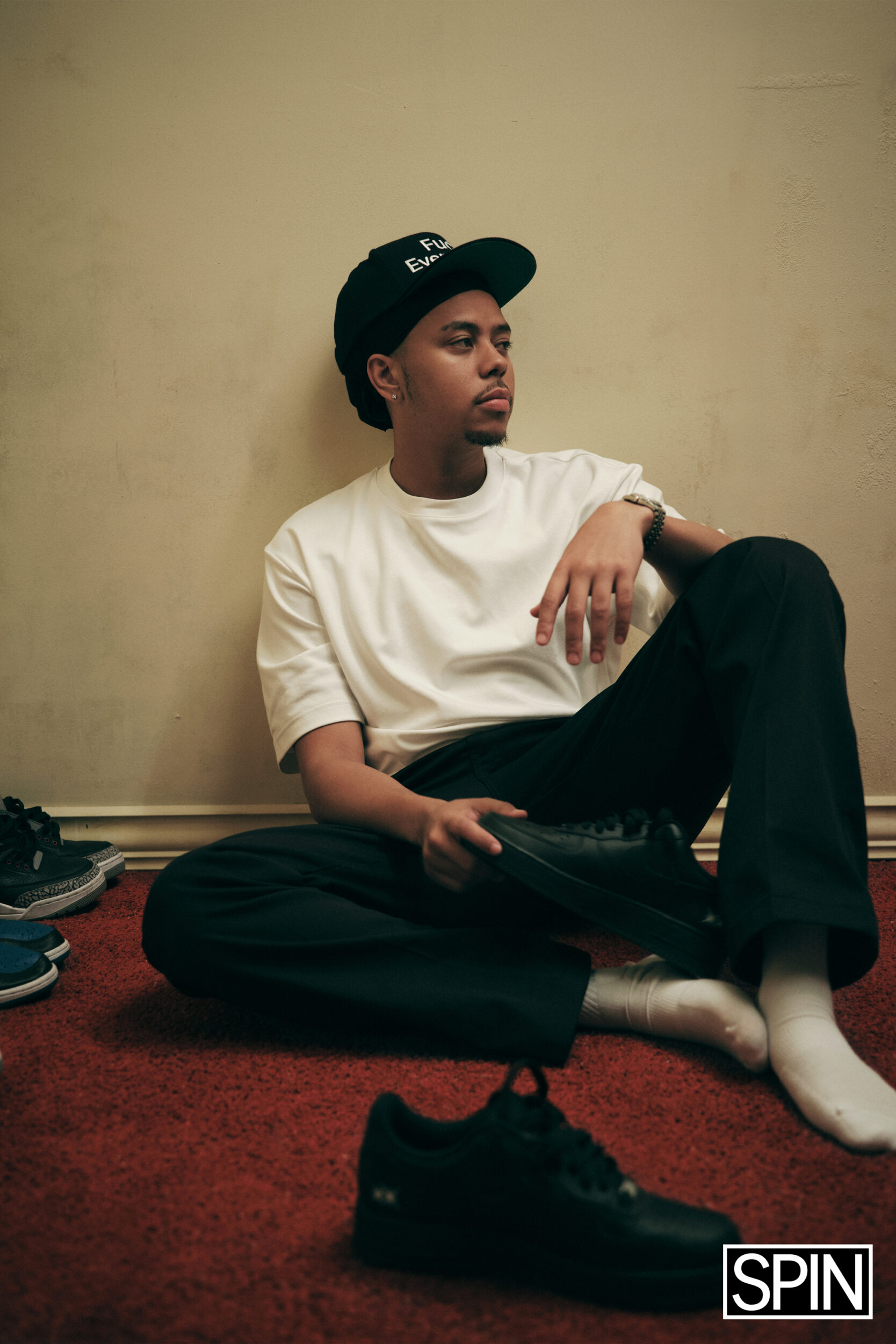 “If you're Black in America, hip-hop is not something you discover, it's just there,” he said, his light brown eyes firmly focused on the road. “[Growing up with younger parents] definitely helped a lot because my parents—my mom more so and my stepdad at the time—were listening to Jay-Z’s The Blueprint and ‘Money Ain't a Thang.' So whoever was that super-hot artist at the time… I remember listening to College Dropout when it first came out as a 5-year-old. I remember listening to T.I., DMX, and Nas on four-hour car rides.”