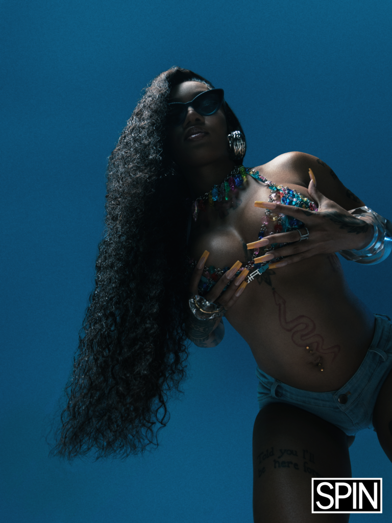 “We’re different,” Glo proudly says about the lineage of female Memphis rappers she comes from, subconsciously balling her tattooed fists mid-sentence. “Memphis is a gritty, ruthless place. We gotta be hard because the n-ggas is hard. They talk a lot of shit, and it just rubs off on the females.”